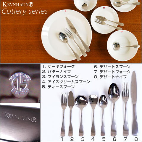 [1]ケーキフォーク [2]バターナイフ [3]ブイヨンスプーン [4]アイスクリームスプーン [5]ティースプーン [6]デザートスプーン [7]デザートフォーク [8]デザートナイフ 【18-8ステンレスの輝き!プロ仕様カトラリーシリーズ】 高品質な18-8ステンレス(ナイフは焼き入れ処理で強化された13-0ステンレス)を使用したカトラリーシリーズです。