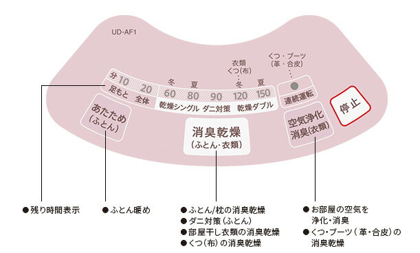 【SHARP シャープ】プラズマクラスターふとん乾燥機UD-AF1-W (ホワイト系) ■乾燥マット不要でダブルサイズのふとんまで消臭乾燥 ■プラズマクラスターと温風で消臭・ダニ対策 ■部屋干し衣類やくつの乾燥、お部屋の空気浄化にも 自然界と同じイオンで空気を浄化する「プラズマクラスター」技術 「プラズマクラスター」は、自然界に存在するのと同じプラスとマイナスのイオン。
