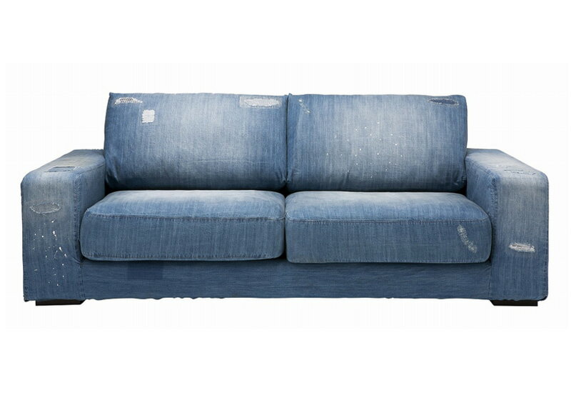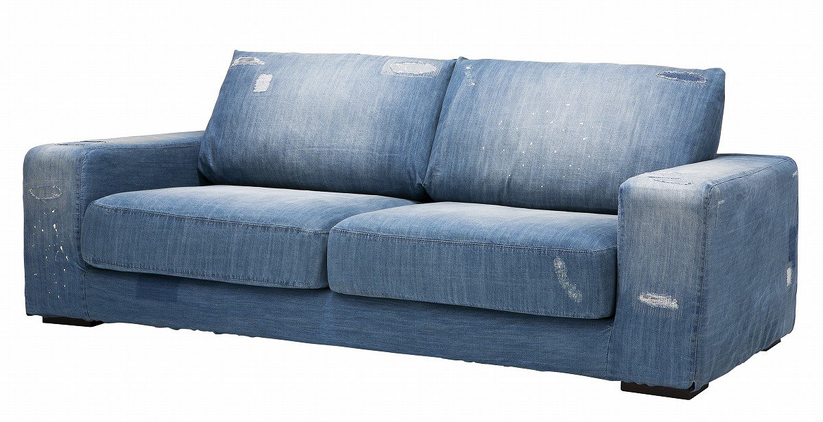 はき込まれたようなユーズド加工のブルーデニムをふんだんに使ったカバーリングソファ。