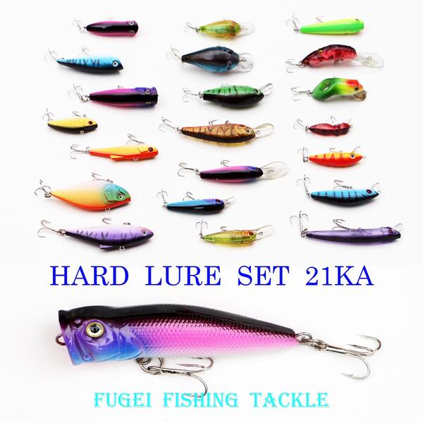 ハードルアー 21個 シャッド、ミノー、トップウォーター(ポッパー、ペンシル)、クランクベイト、バイブレーション各種有【R12lureset21KA】ルアー フィッシング用 ルアーセット